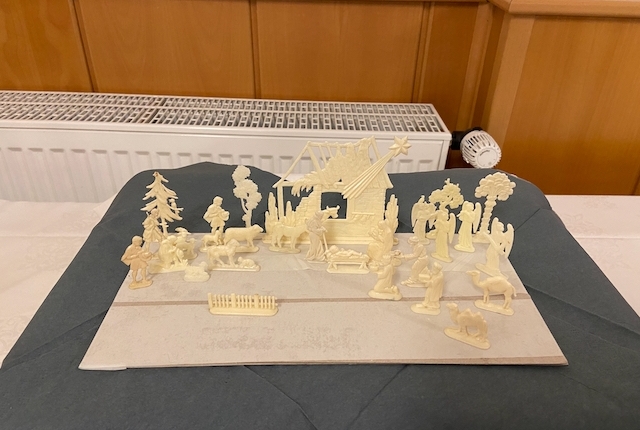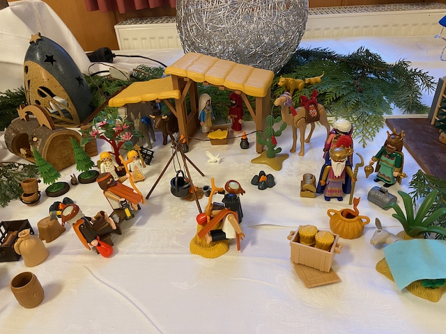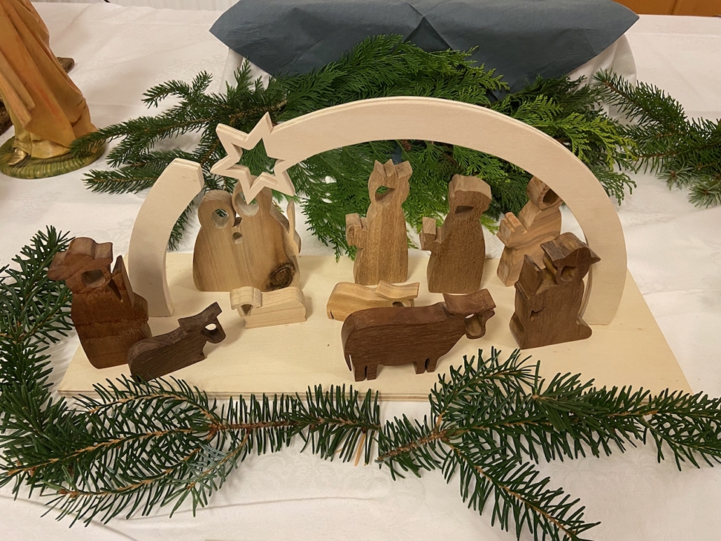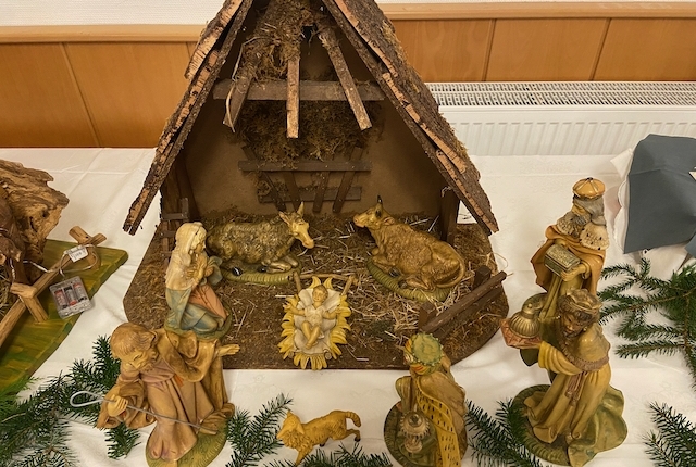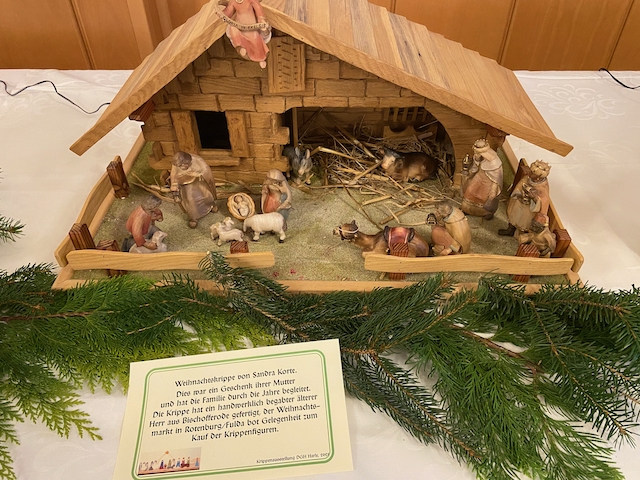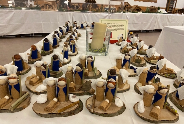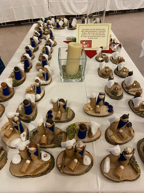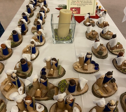 Gegen eine Spende, die der Außenbeleuchtung der Harler Kirche weiterhelfen soll, konnten kleine, aus Kork gebastelte Miniaturkrippen erworben werden. Hier kam immerhin ein stolzer Betrag von mehr als 450 € zusammen.