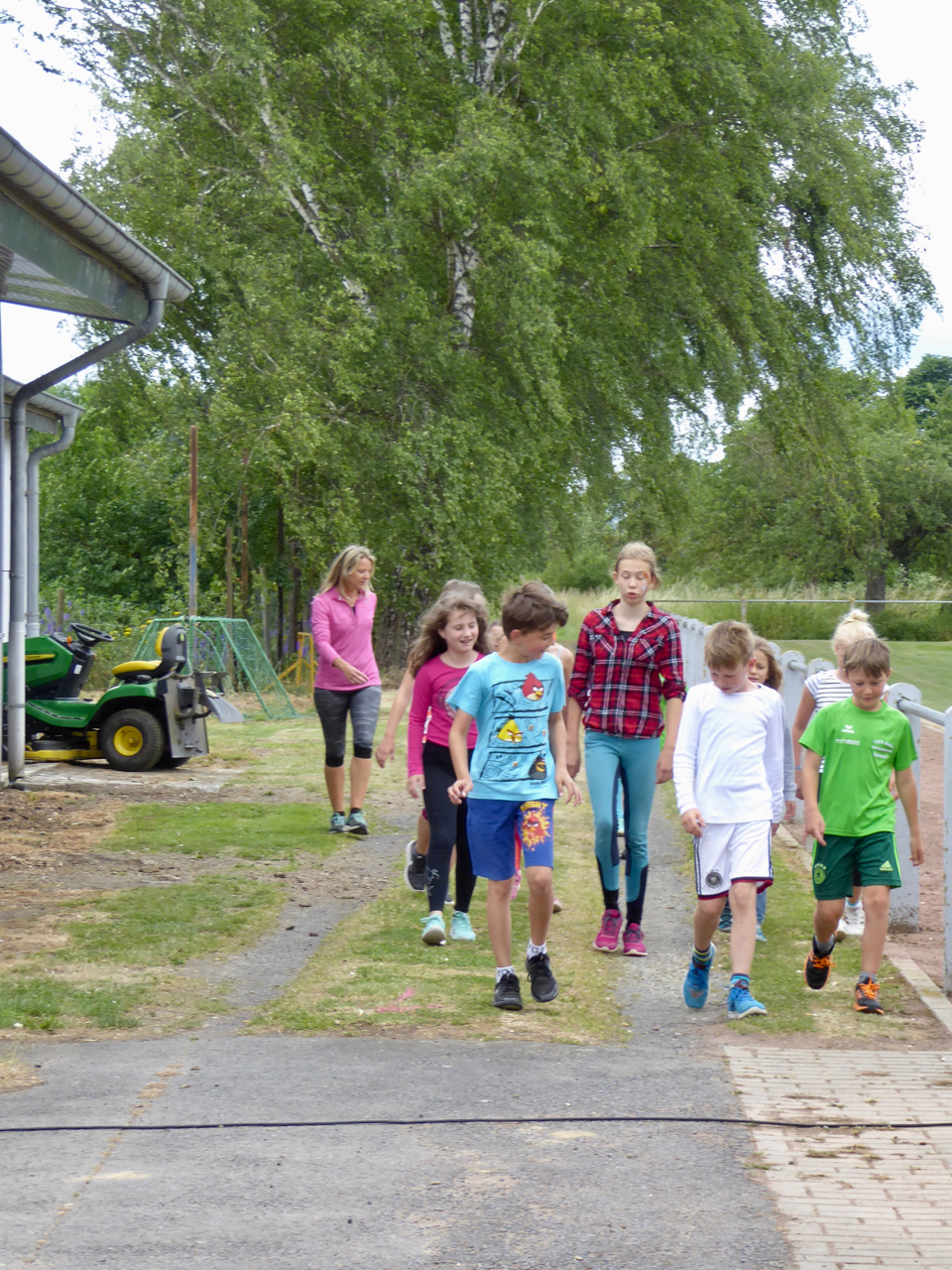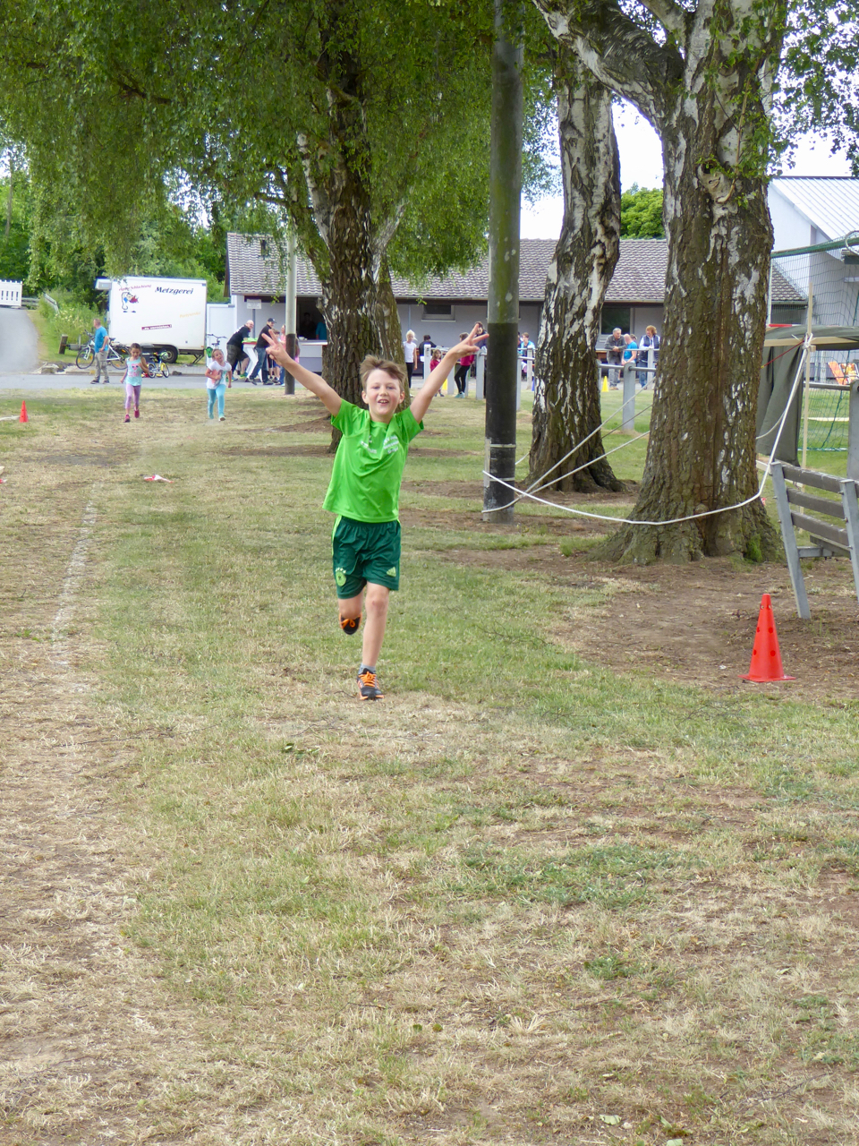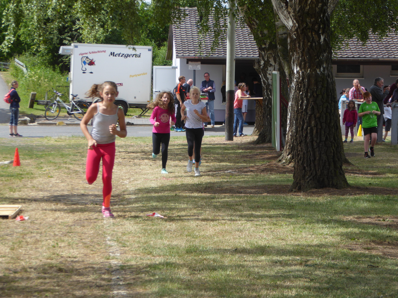 Gestartet wurde um 11:00 Uhr mit dem 1000 Meter Lauf für die 7- 11 jährigen Kinder. Anschließend starteten die 3- 6 jährigen aus der Kinderturngruppe beim 400 Meter-Lauf. Alle Kinder konnten sich über einen lauten und anerkennenden Applaus beim Zieleinlauf freuen.